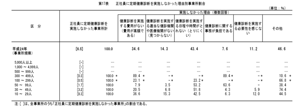 厚生労働省の調査によると、定期健康診断を実施しなかった事業所の理由として最も多いのは、「日程や時間の確保が難しい(43.4%)」 という声でした。